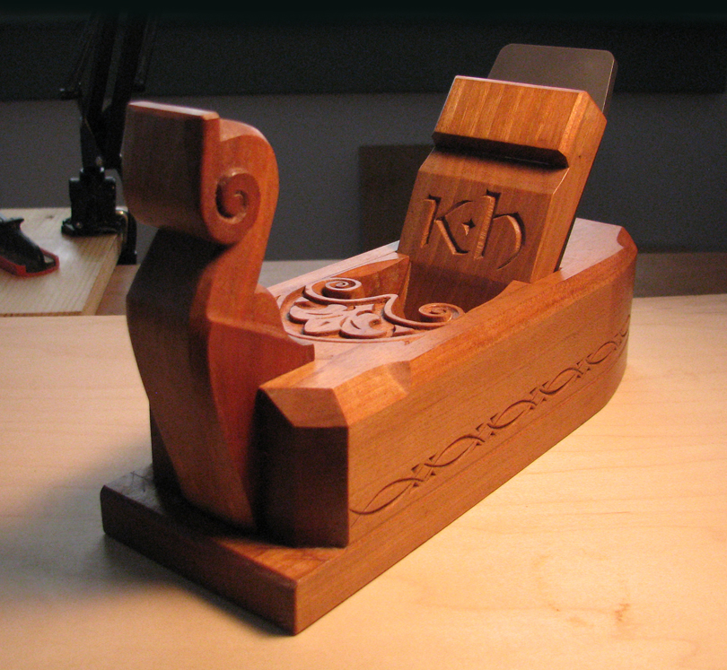I'm actually finished building Sven, so the three shots at the bottom of this post show a couple coats of boiled linseed oil worked into the wood and the carving I added to the top of the plane.